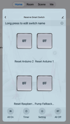 You can reset the Raspberry Pi which runs Home Assistant (as well as the Arduino’s which run sensors and remote valves) using the Tuya Smart App. Whilst you can use it from the dashboard, it also operates independently over wifi with its app.